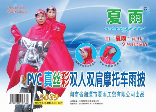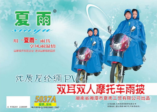 pvc真絲彩雙人(rén)雙肩摩托車(chē)雨披
